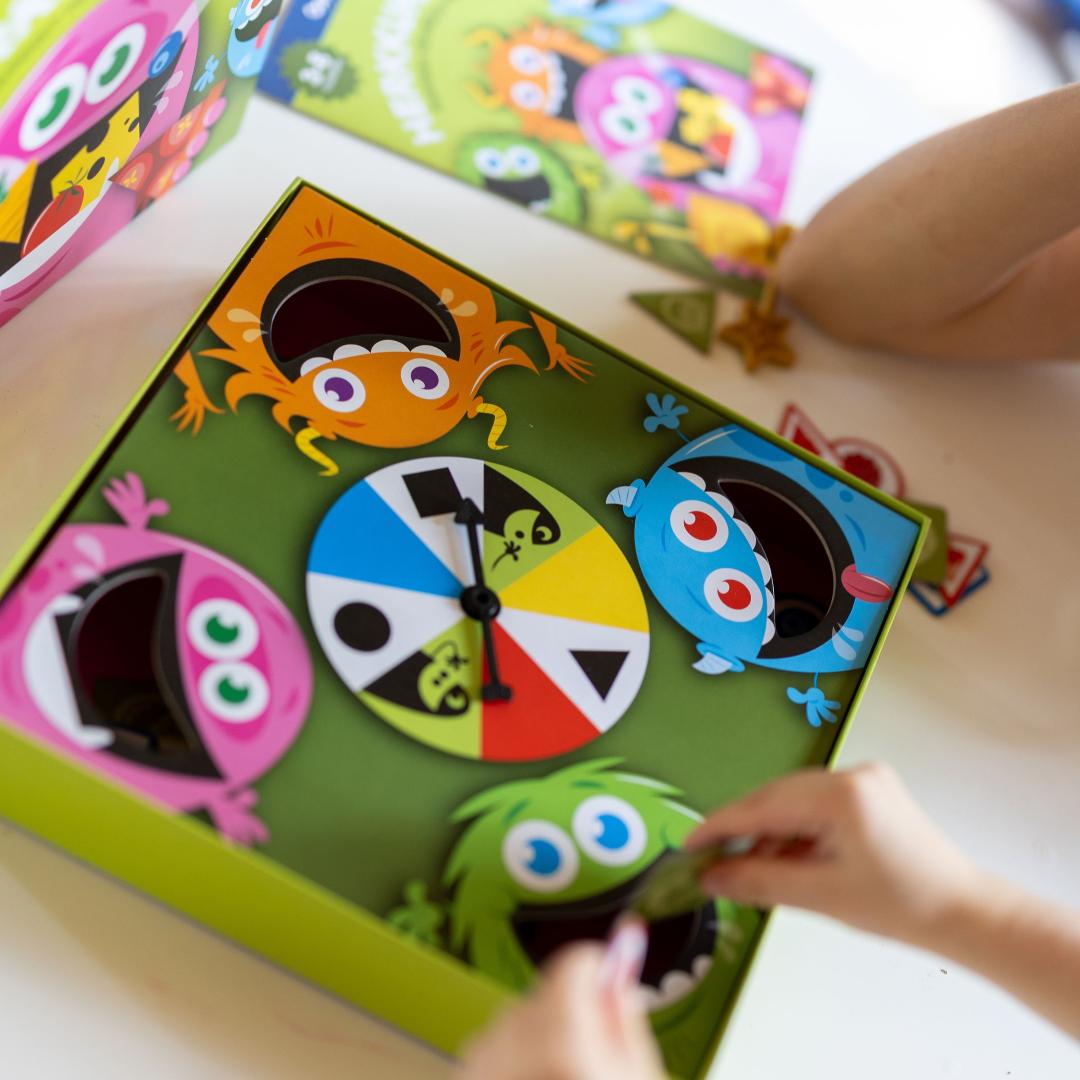 Herkkuhirmut -lautapelissä pyöräytetään kiekkoa ja syötetään hirmulle oikea herkku, valitsemalla oikean muotoinen tai värinen kuvapala. Tässä hauskassa ja opettavaisessa pelissä harjoitellaan värejä, muotoja ja vuorovaikutustaitoja. Yhdessä pelaaminen opettaa odottamaan omaa vuoroa sekä käsittelemään voittoa ja tappiota.