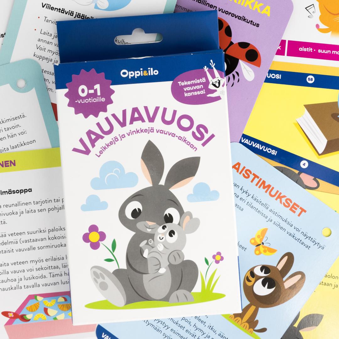 Vauvavuosi-kortit on suunniteltu vauvan läheisille tukemaan lapsen ensimmäisen vuoden kehitystä leikillisen puuhan kautta. Korttien leikit ja vinkit tukevat varhaista vuorovaikutusta ja vauvan kehotietoisuutta. Kortteja on helppo hyödyntää arkisten puuhien ja vauvanhoidon yhteydessä. Kortit antavat monipuolisesti tietoa vauvan kehityksen eri osa-alueista. Vauvavuosi-kortit ovat oiva lahjavalinta babyshowereille tai vastasyntyneen perheelle.