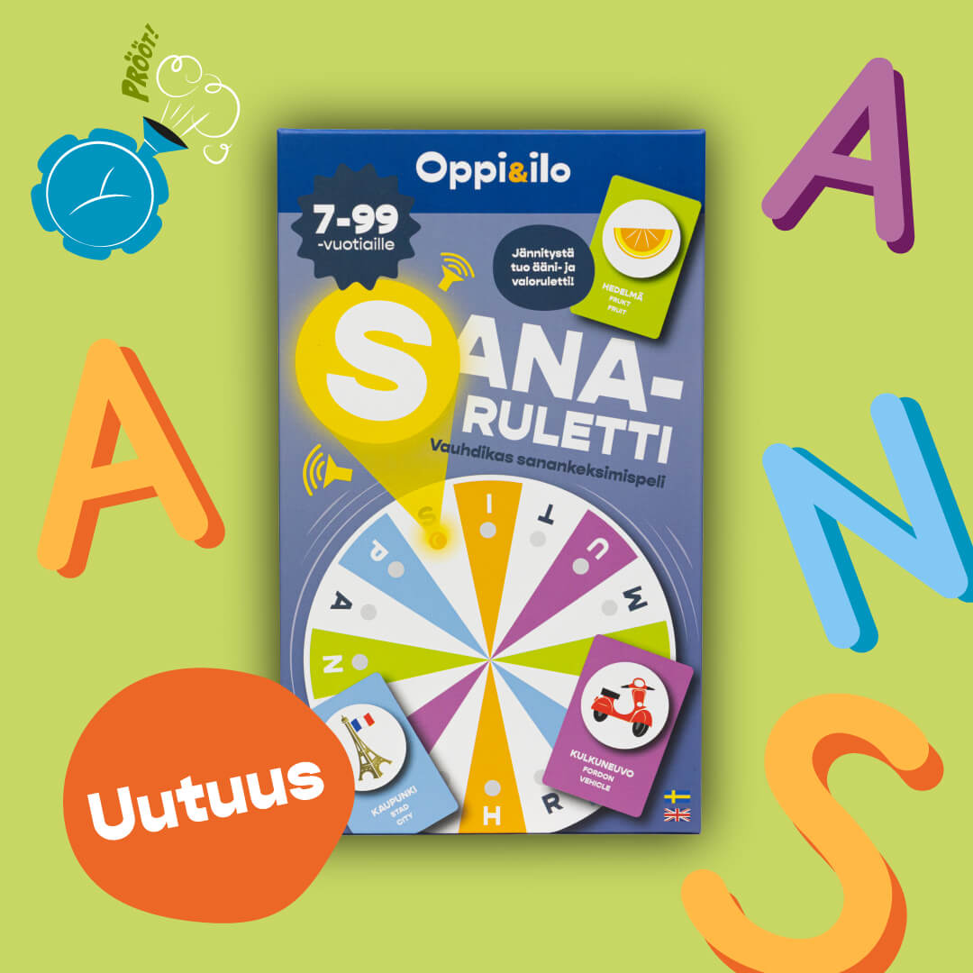 Sanaruletti-pelissä keksitään sanoja ja pelin valoruletti haastaa nopeaan reagointiin. Lennu Limanen -sarjispuuhakirja yhdistää hullunkuriset sarjakuvat ja tehtävät, jotka kutkuttavat nauruhermoja. Väritystyskirjat vievät suositun Cozy colouring -trendin maailmaan. Suloinen kuvitus houkuttelee värittämään mielikuvitusta ja luovuutta käyttäen.